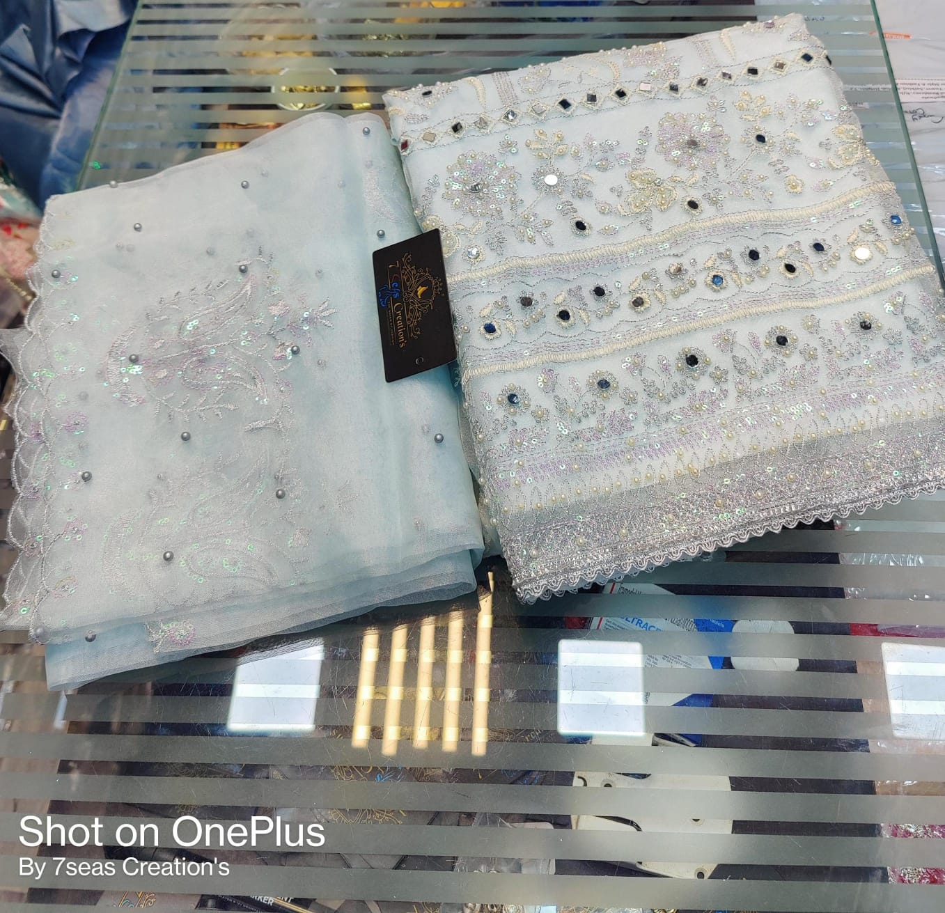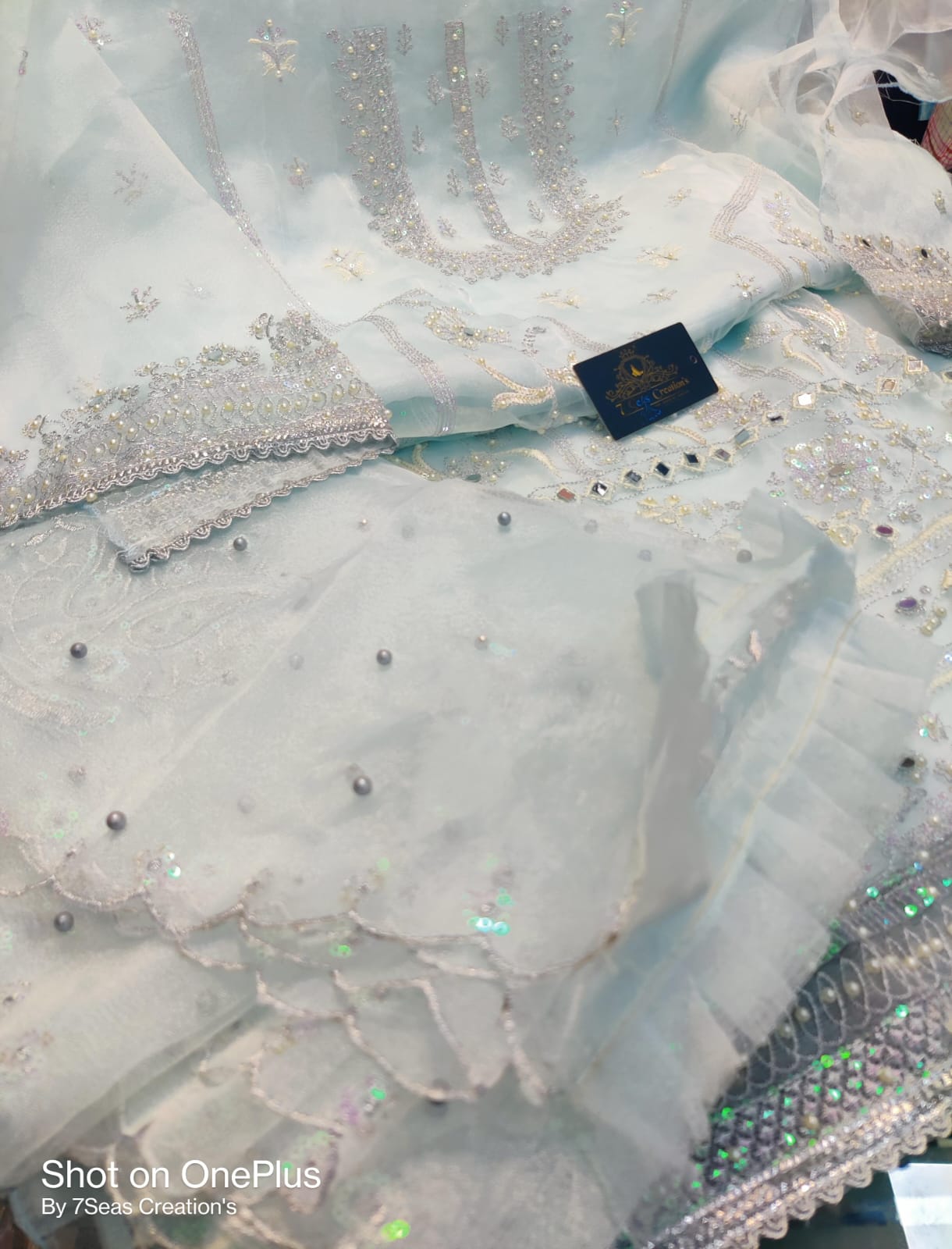 TOP - Organza with beautiful embroidery, rainbow sequins, mirror & Mottis work all over
