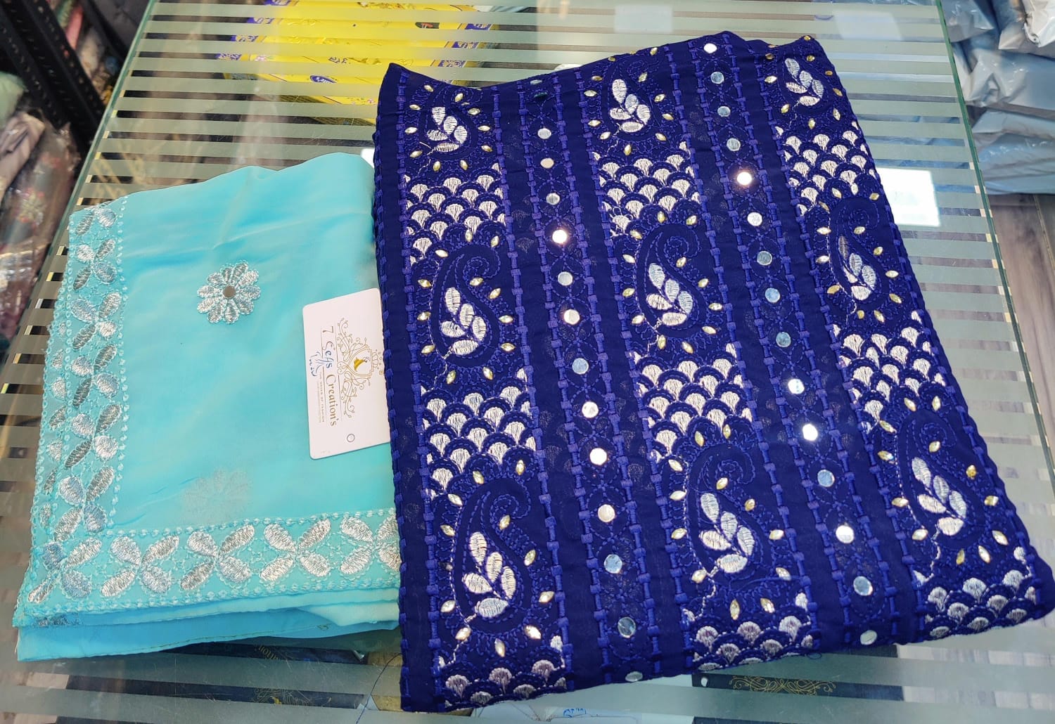 TOP - Georgette with beautiful chikankari & Mirror work all over