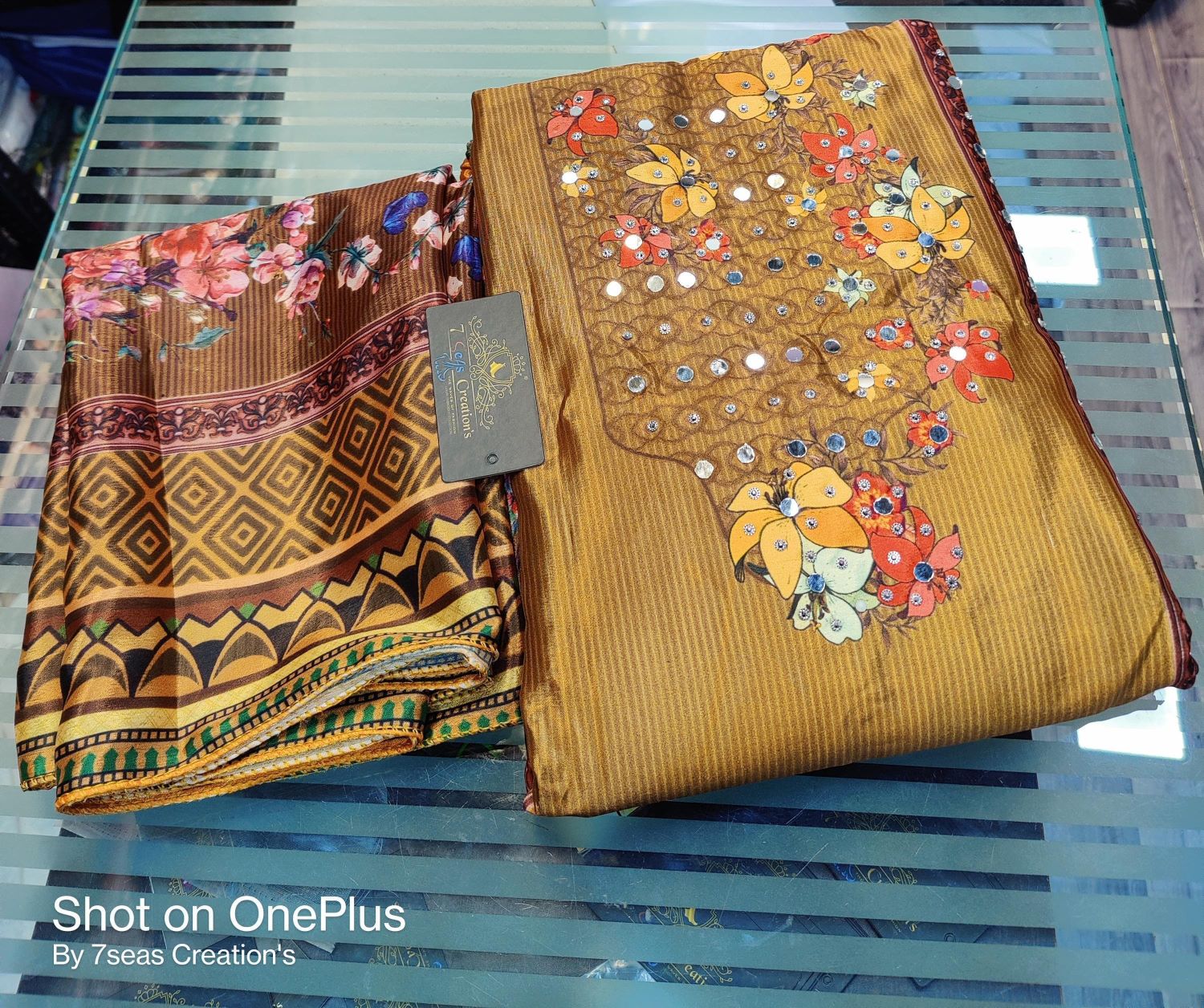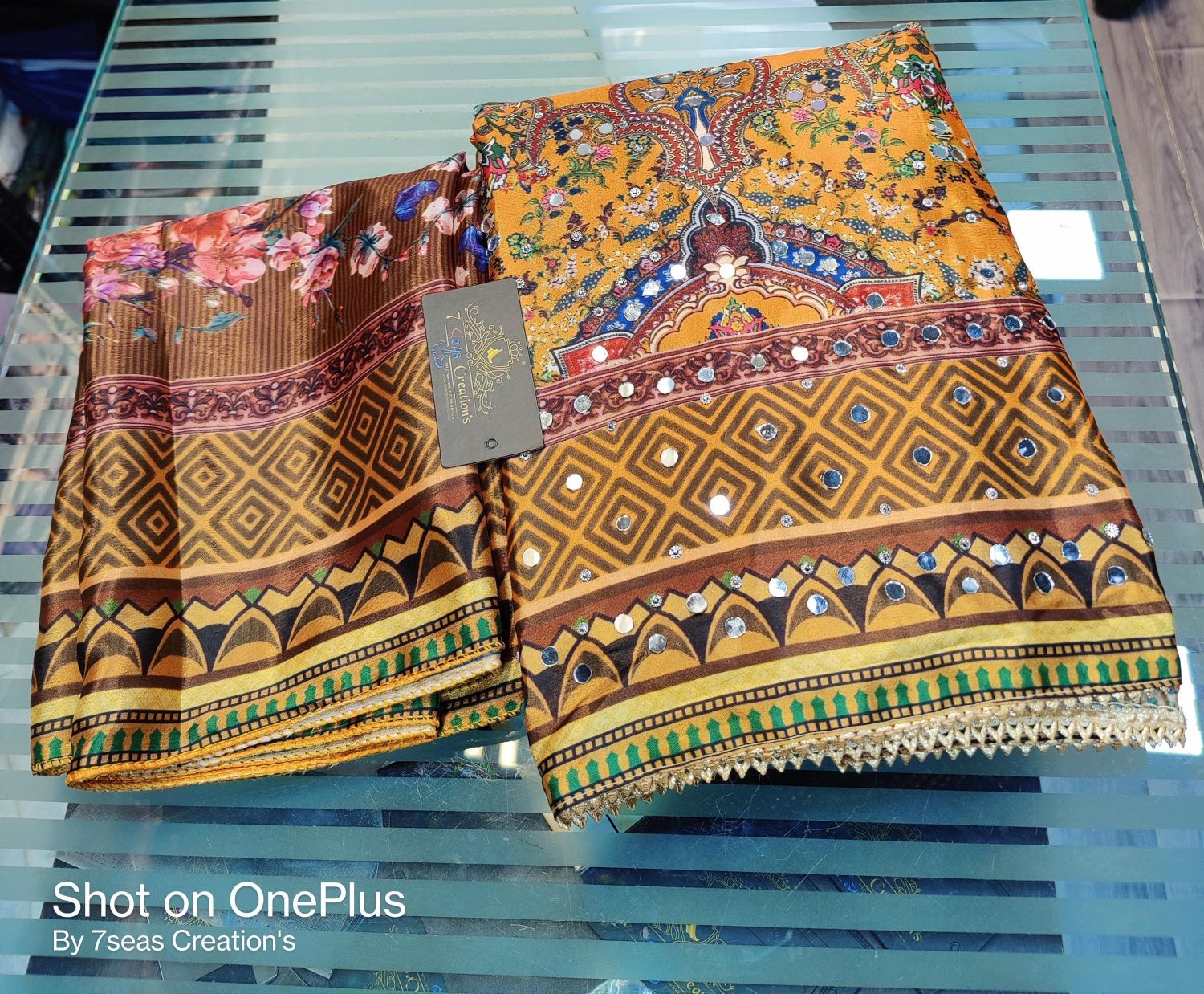 TOP - Pure chinnon silk with absolutely gorgeous digital printing, original mirror & diamond work all over