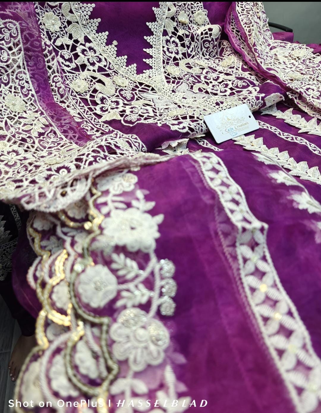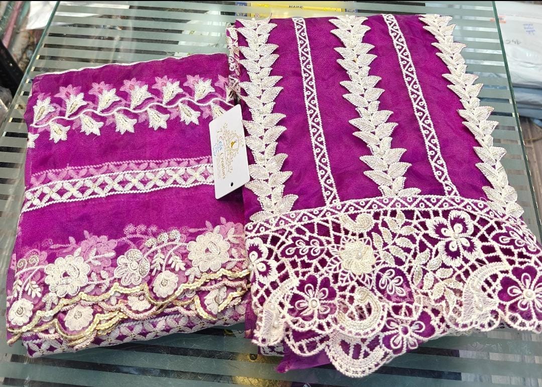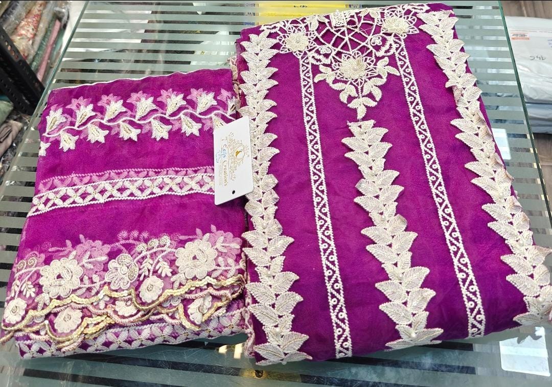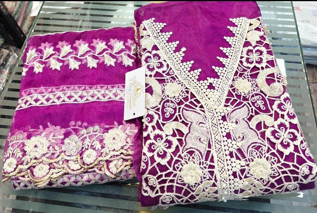 TOP - Organza with gorgeous embroidery, sequins, cutting pasting work, Mottis, 3d flower work & cutwork all over