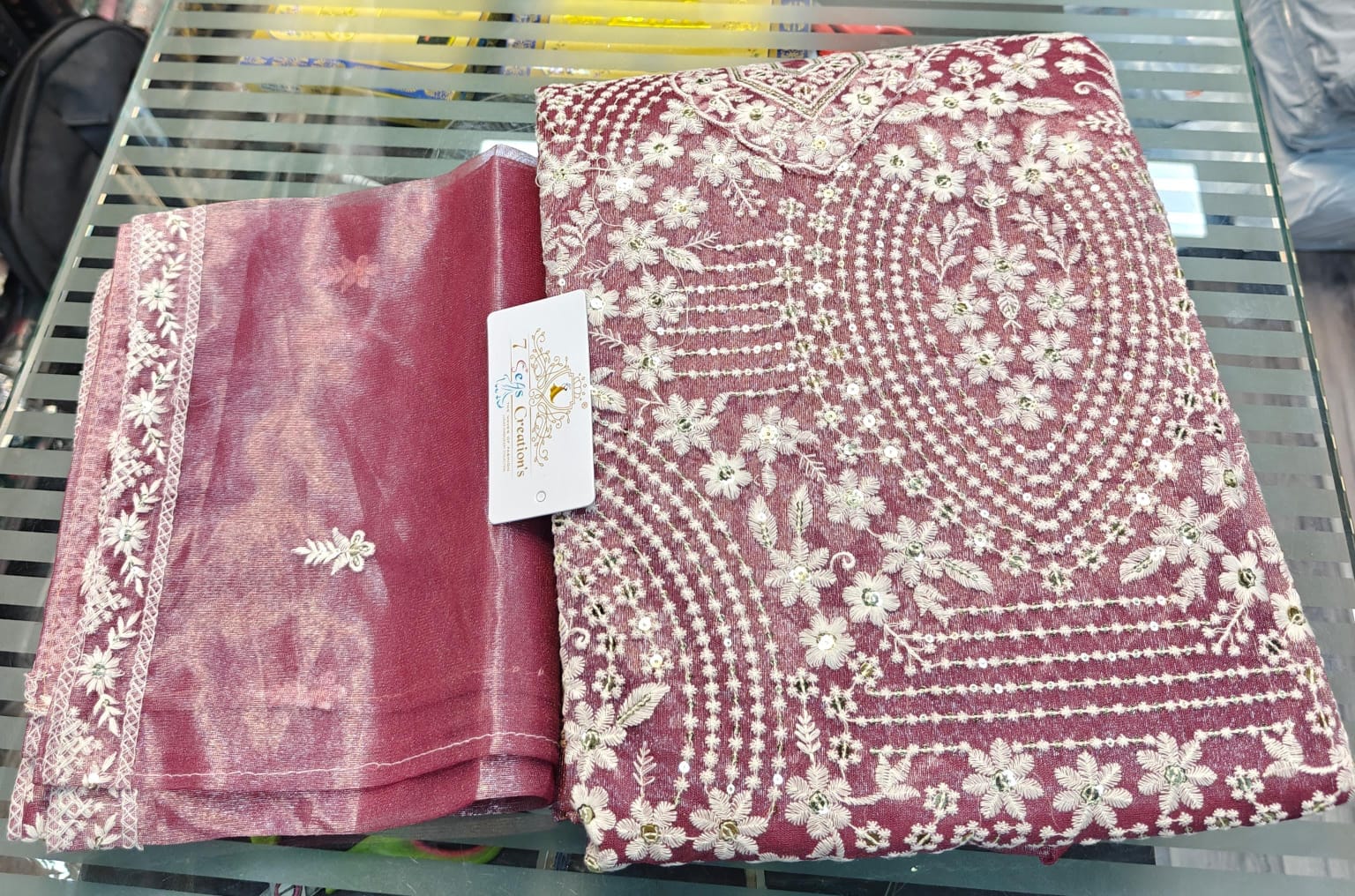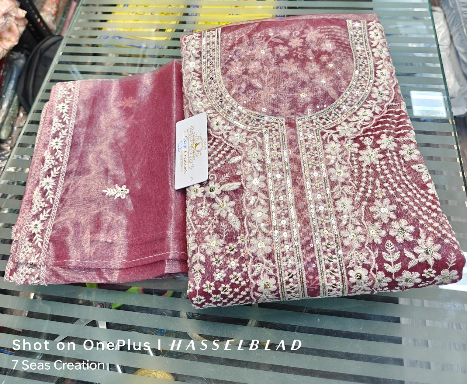 TOP - Twill net with beautiful & heavy embroidery with sequins work all over