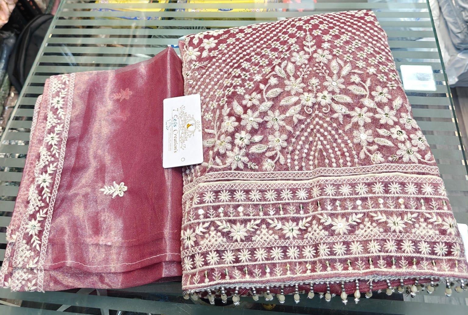 DUPATTA - Twill net with beautiful embroidery & sequins work all over