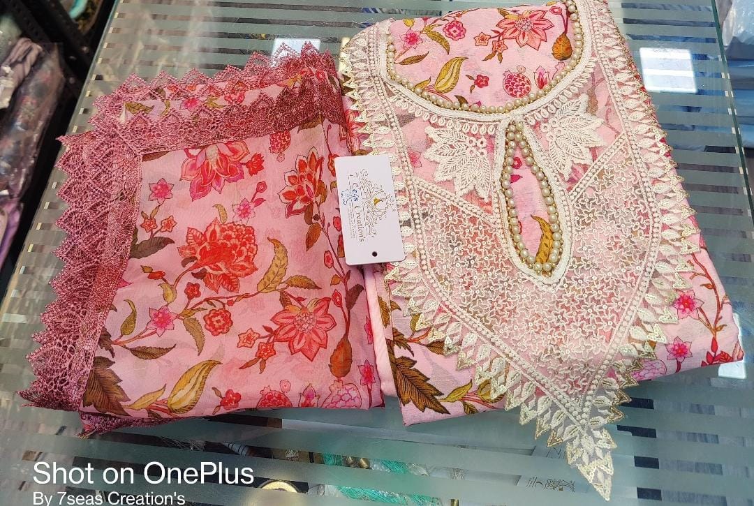DUPATTA - Organza with beautiful digital printing all over & 4 sided crochet laces used to enhance the beauty