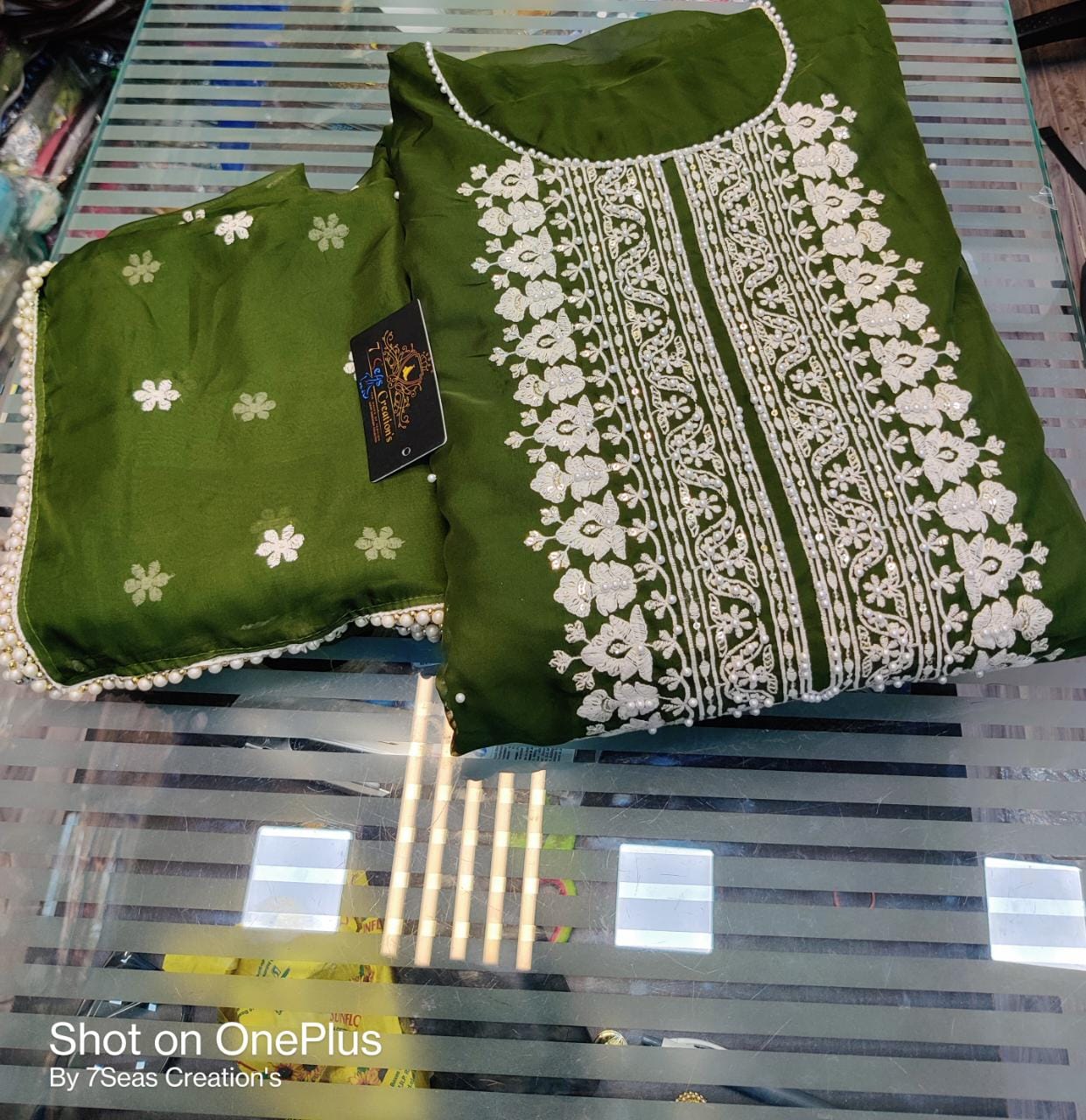 TOP - Soft Organza (Heavy quality) with absolutely gorgeous embroidery, Sequins & Mottis work all over