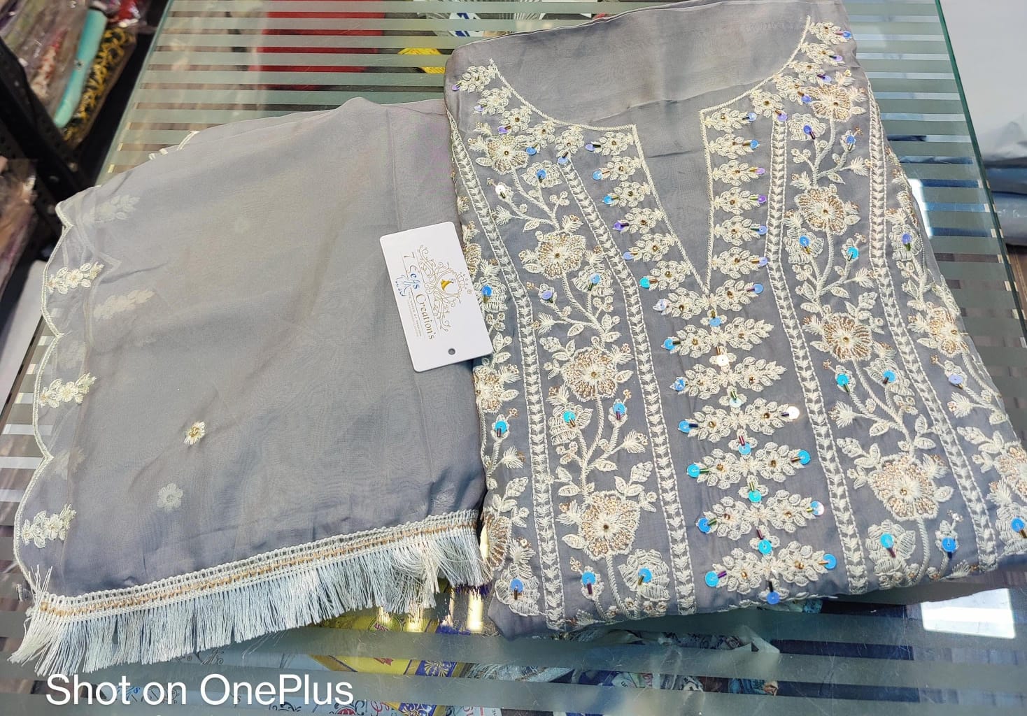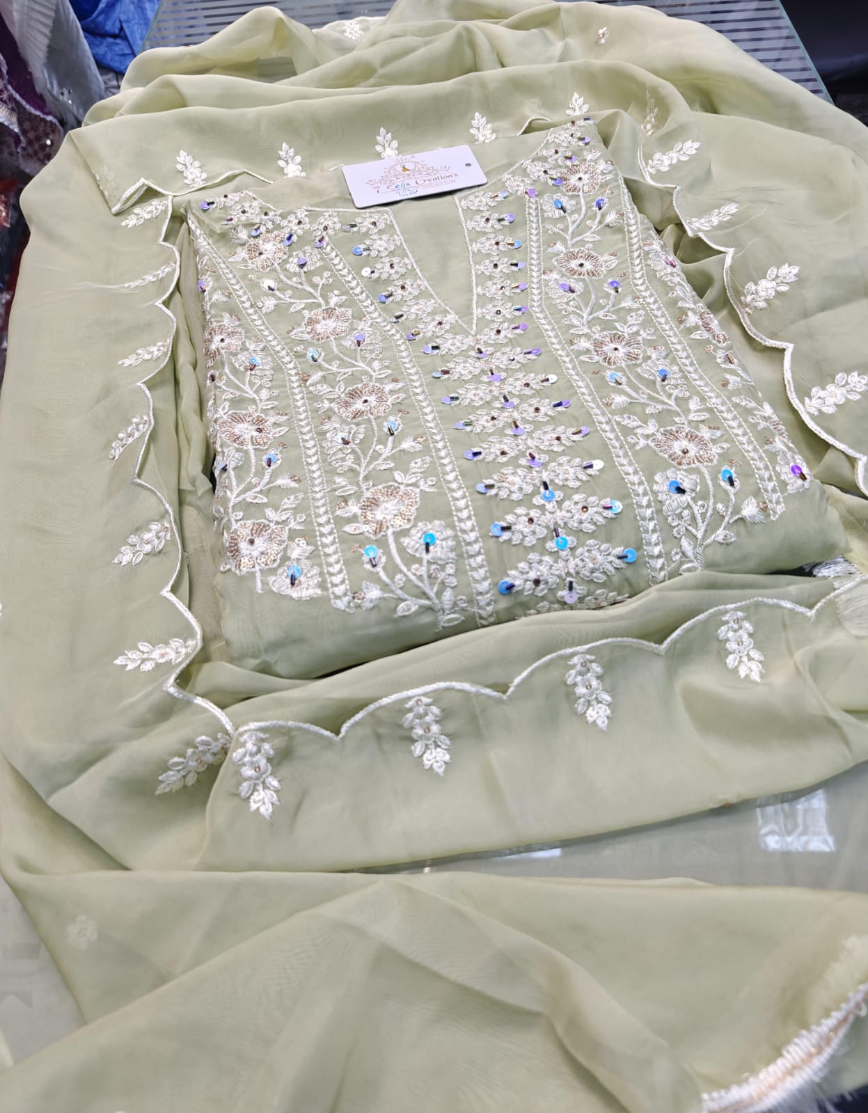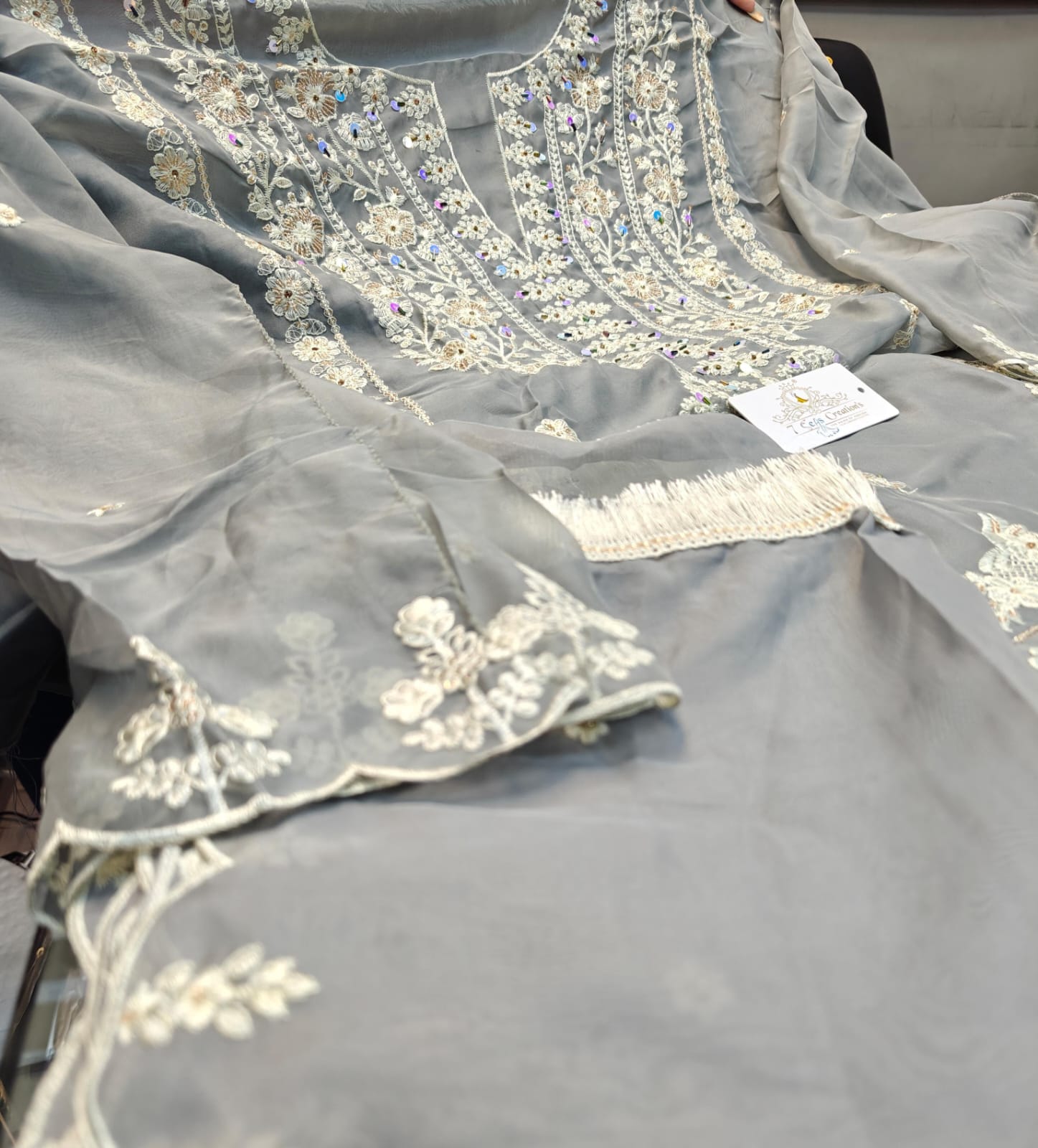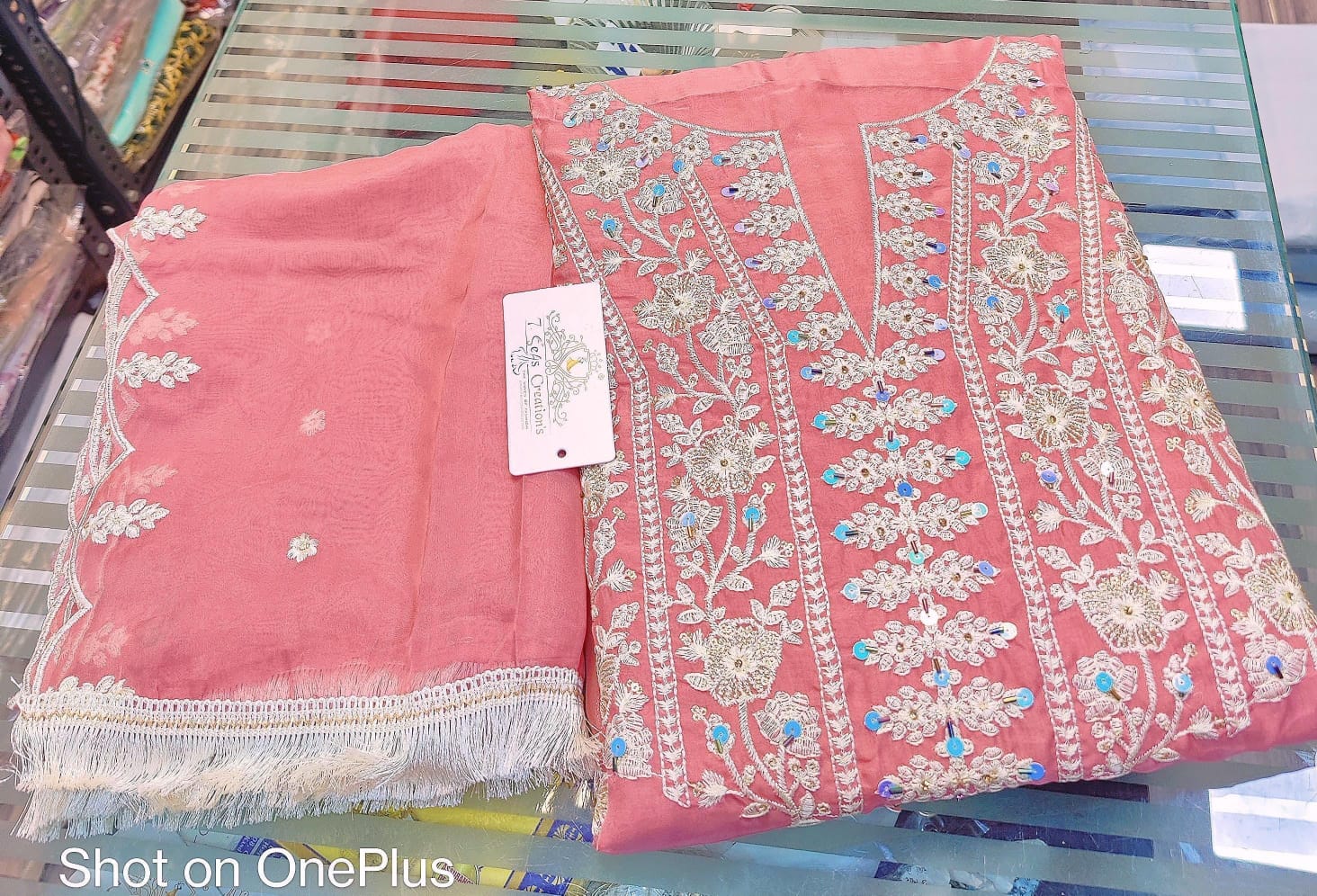 TOP - Heavy Organza (Soft quality) with beautiful embroidery, sequins & khatli work (Hand work)