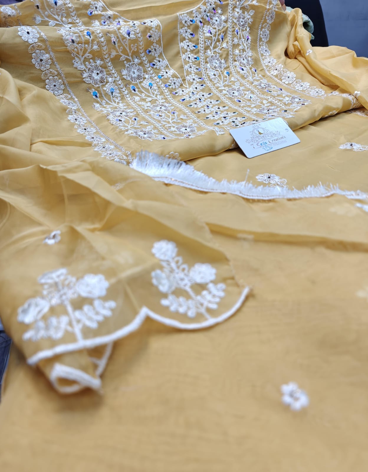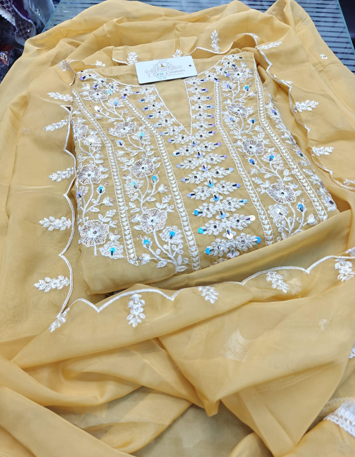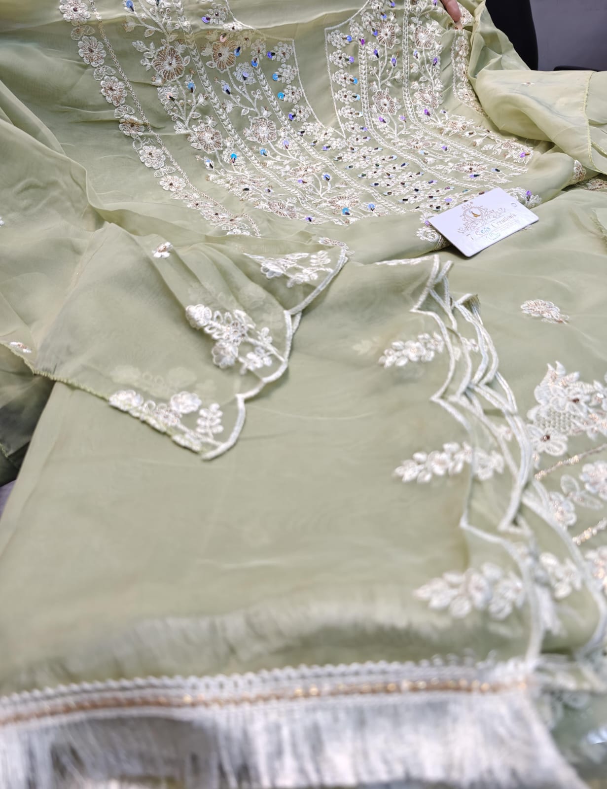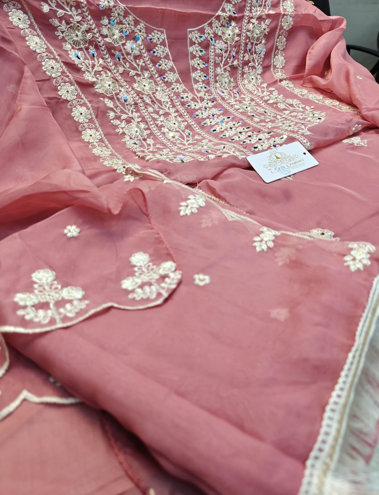 TOP - Heavy Organza (Soft quality) with beautiful embroidery, sequins & khatli work (Hand work)
