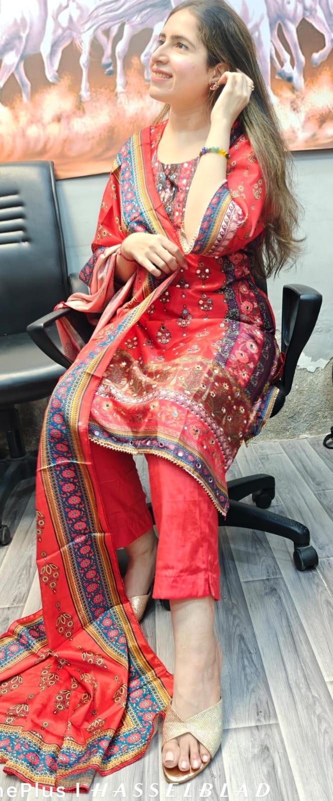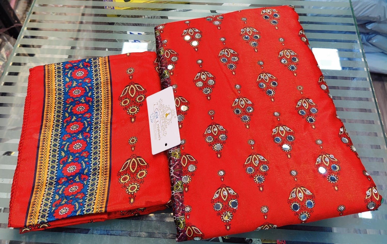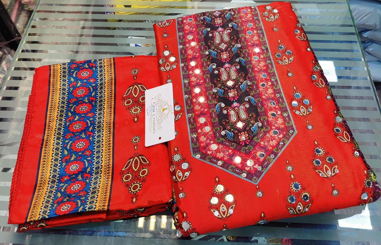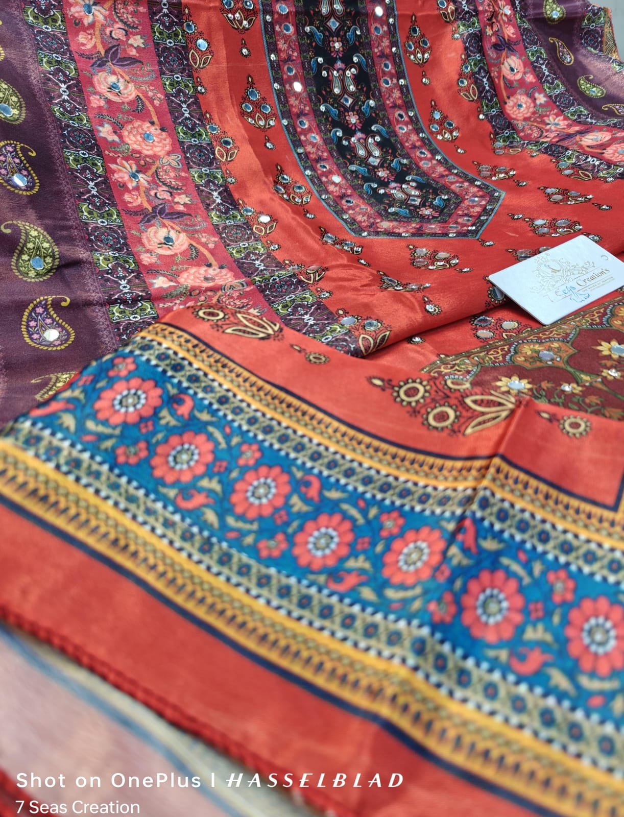 TOP - Pure chinnon silk with absolutely gorgeous digital printing, original mirror & diamond work all over