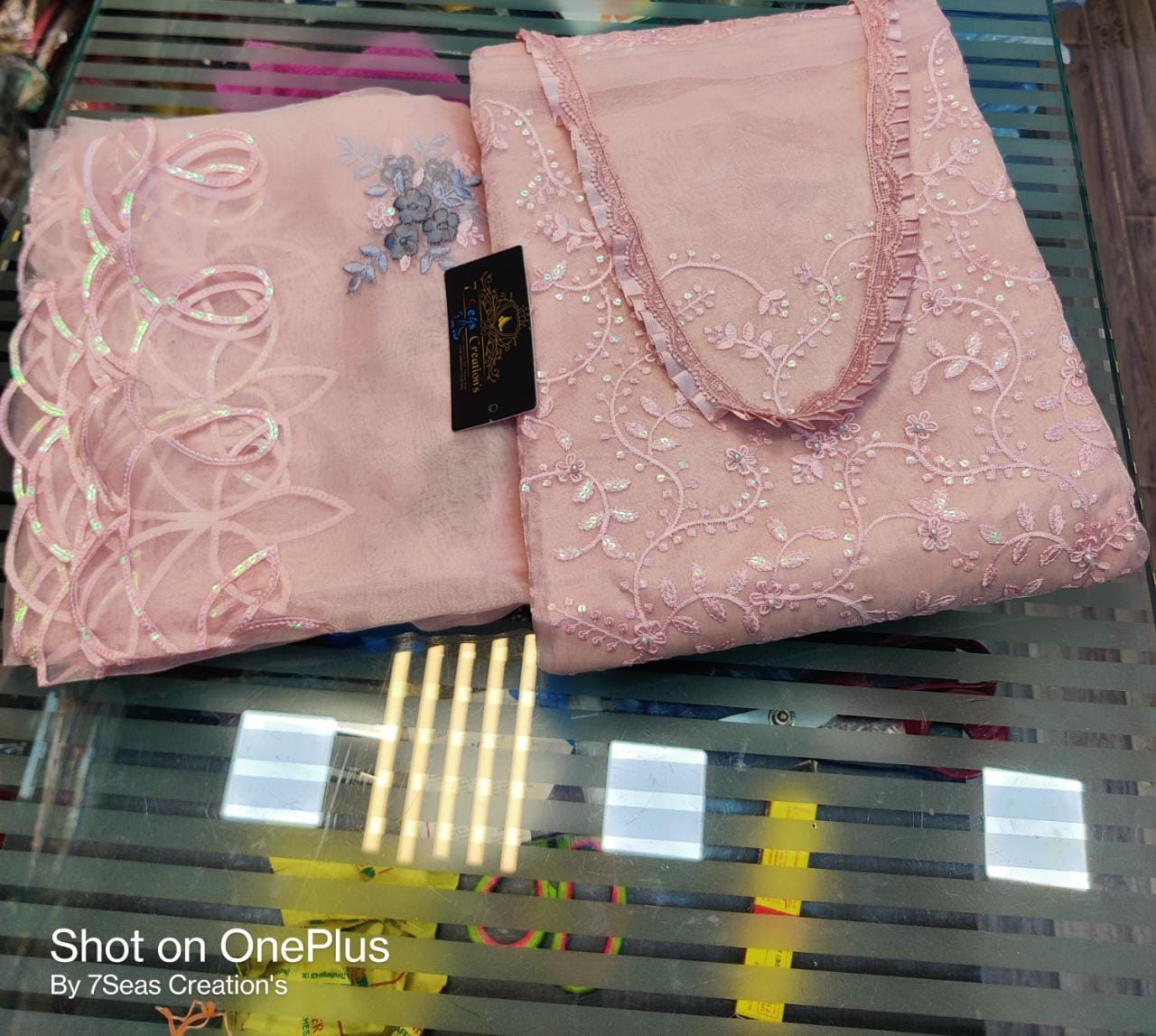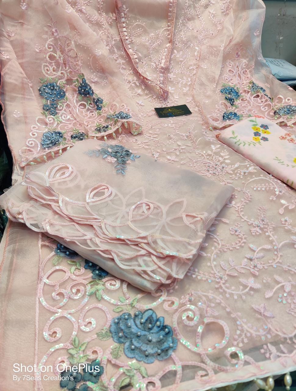 DUPATTA - Organza with beautiful Multi-colored embroidery & sequins work all over .